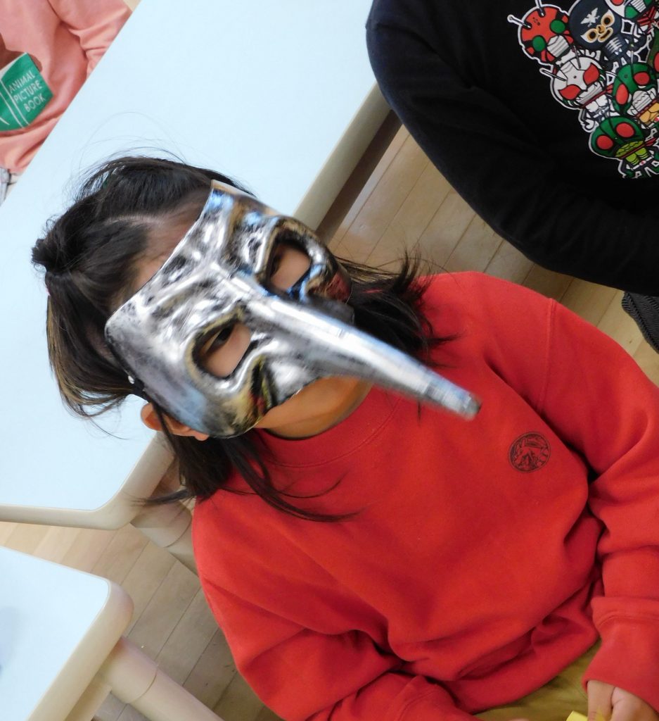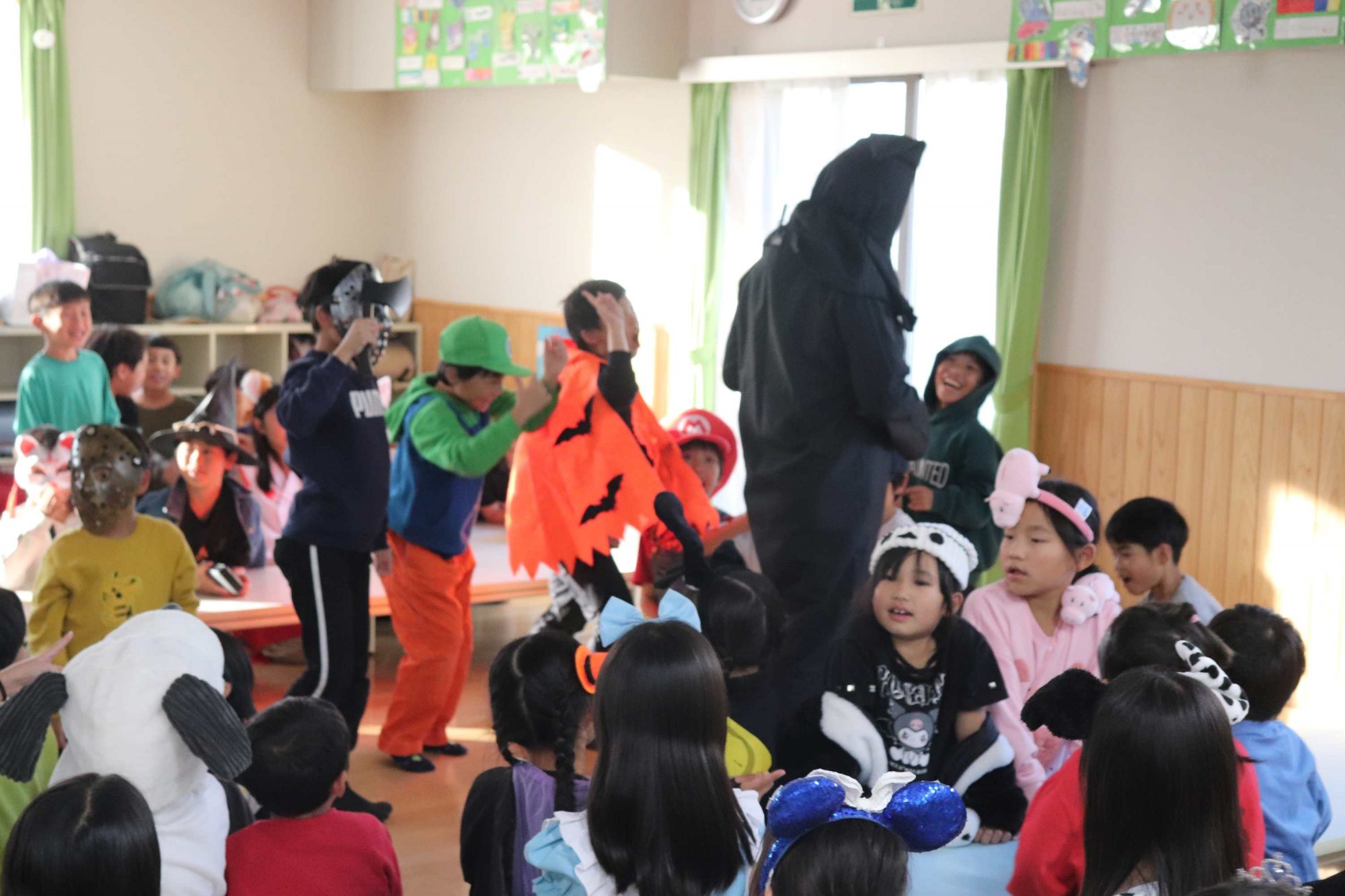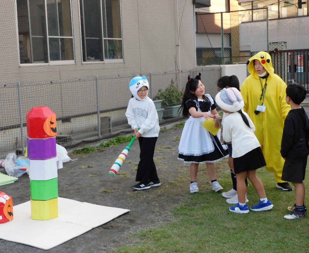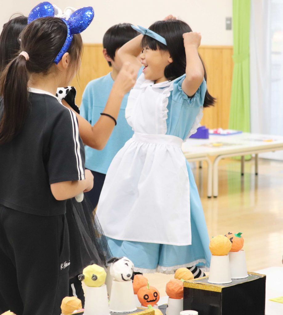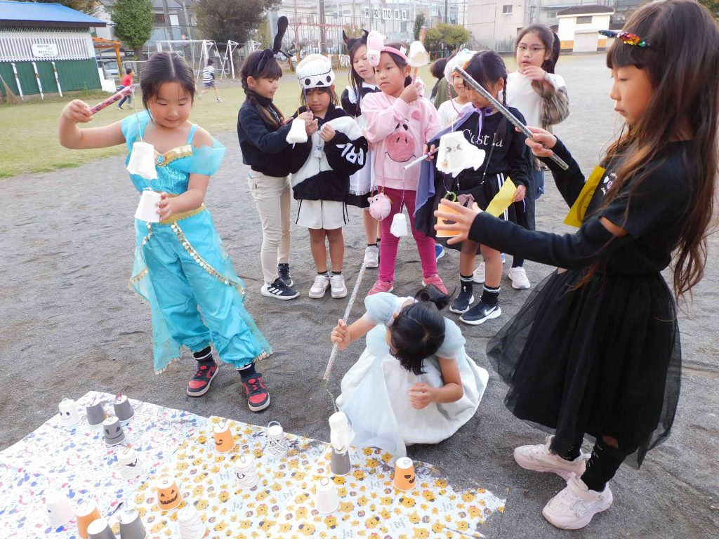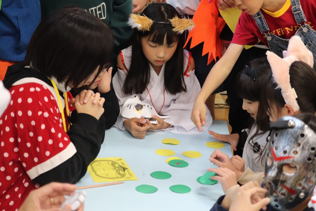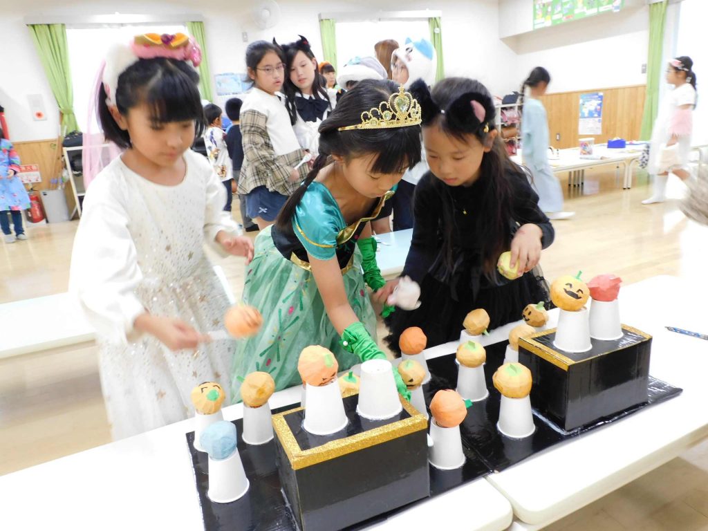 全てのミッションをクリアしたグループは、カードと交換でスペシャルおやつをGET!「じゃがりこみたい!」「中は何が入ってるんだろう??」と言いながら、おやつのカップにデコレーションをして楽しんでいました。仮装を楽しむ子も多く、ご近所の方からも「楽しそうね♪」と声を掛けられるほど、賑やかなハロウィーンイベントとなりました。
