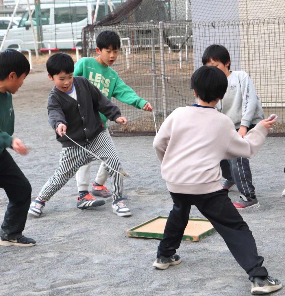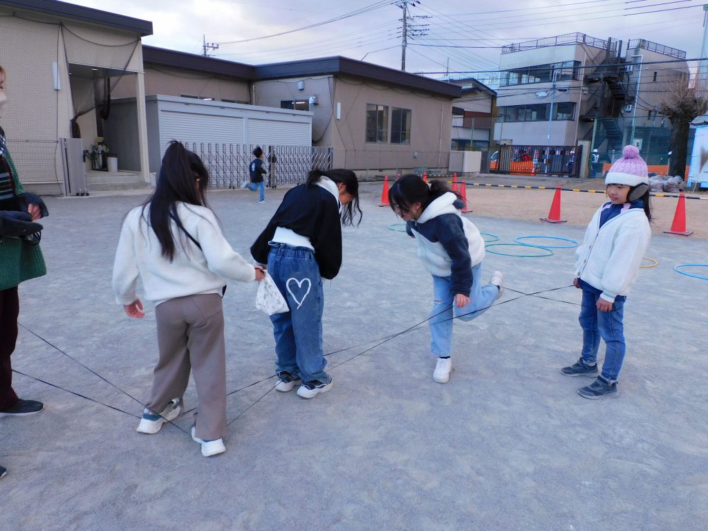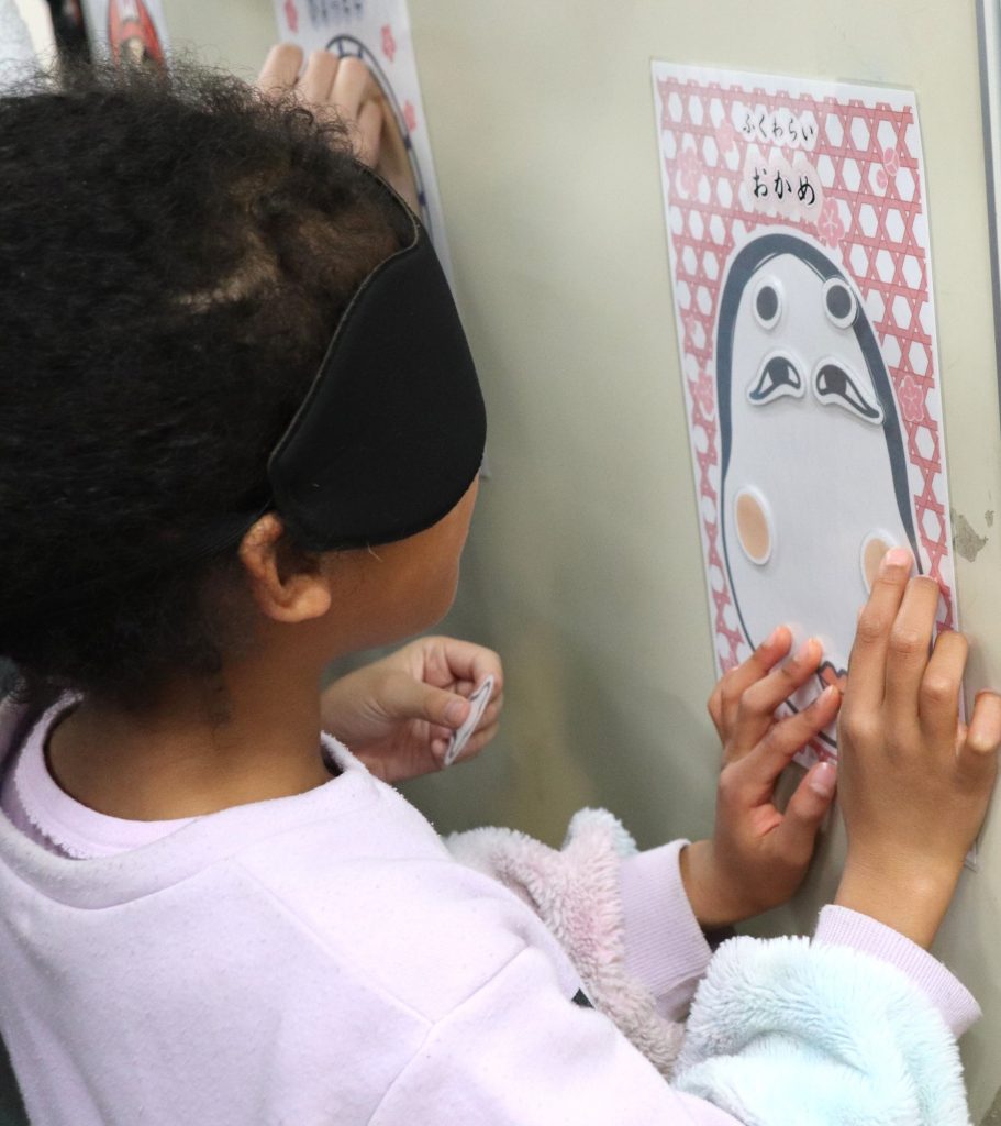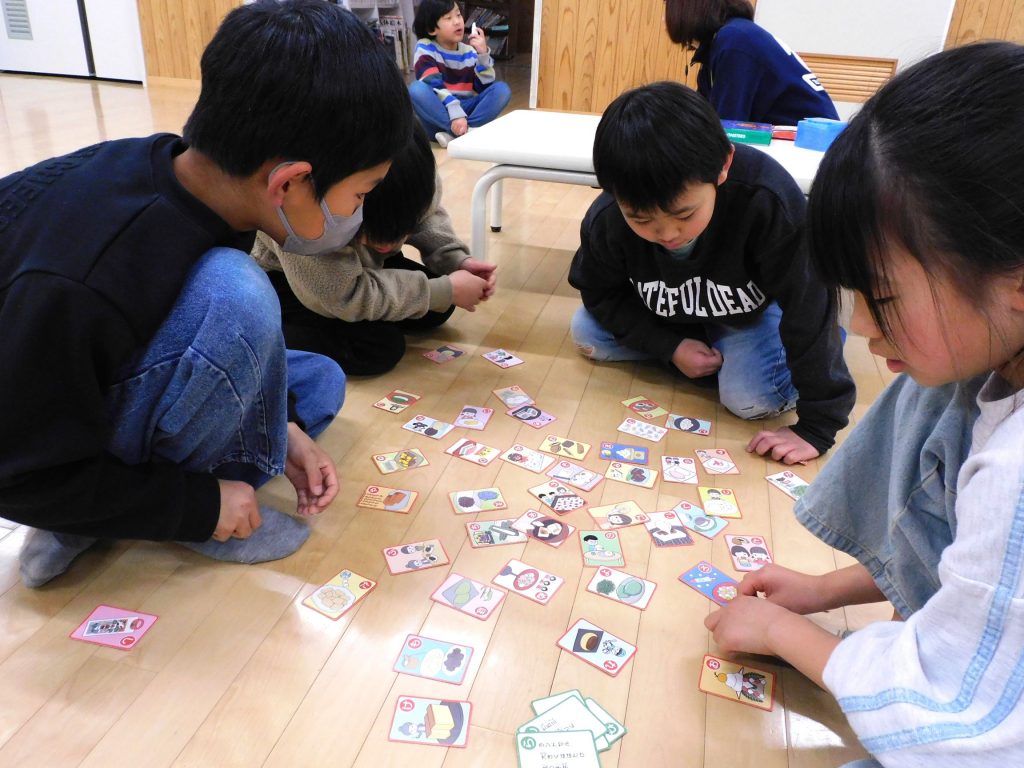 「3、2、1、ゴー…シュート!」コマのコーナーでは、大きな掛け声が聞こえ、白熱したバトルを繰り広げていました。けん玉・お手玉・コマは、名人級を目指して1/28(水)に検定を行います。早くも検定表を見ながら練習する子が多くいました。一番人気は福笑い!終始笑い声が響き渡っていました。「メンコ、1回投げただけで2枚ゲットした」「あんたがたどこさ9回成功したよ!」「カルタ、こんなに取れた」と、たくさんの笑顔が見られ、楽しいひと時となりました☆