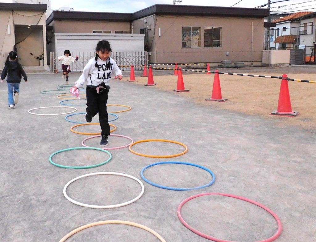 校庭【コマ・ケンパ・あんたがたどこさ・ゴム跳び】